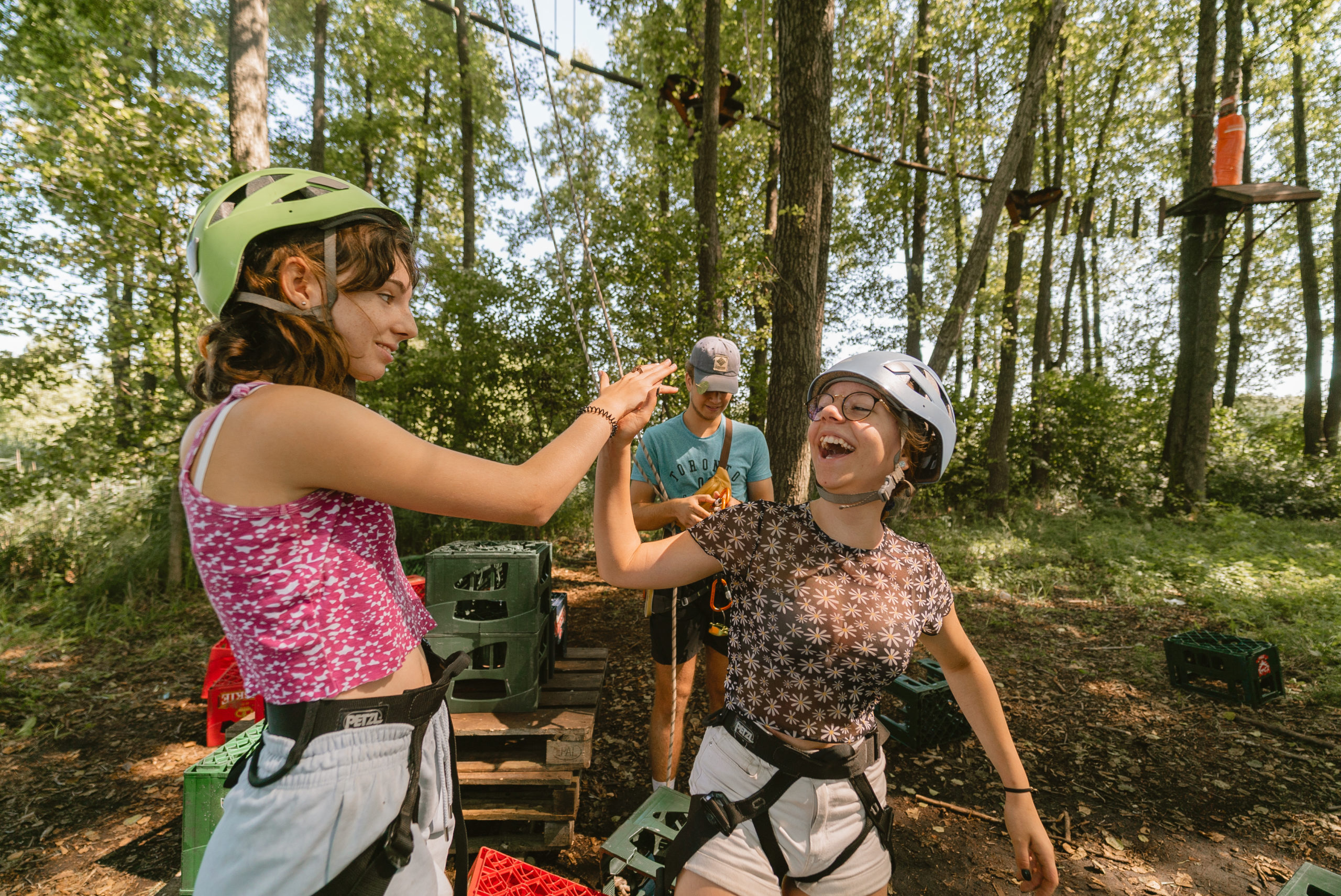- Wyzwania wysokościowe: park linowy z przeszkodami oraz ścianka wspinaczkowa jako test sprawności fizycznej,