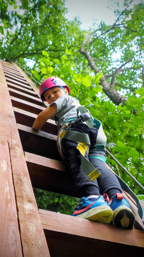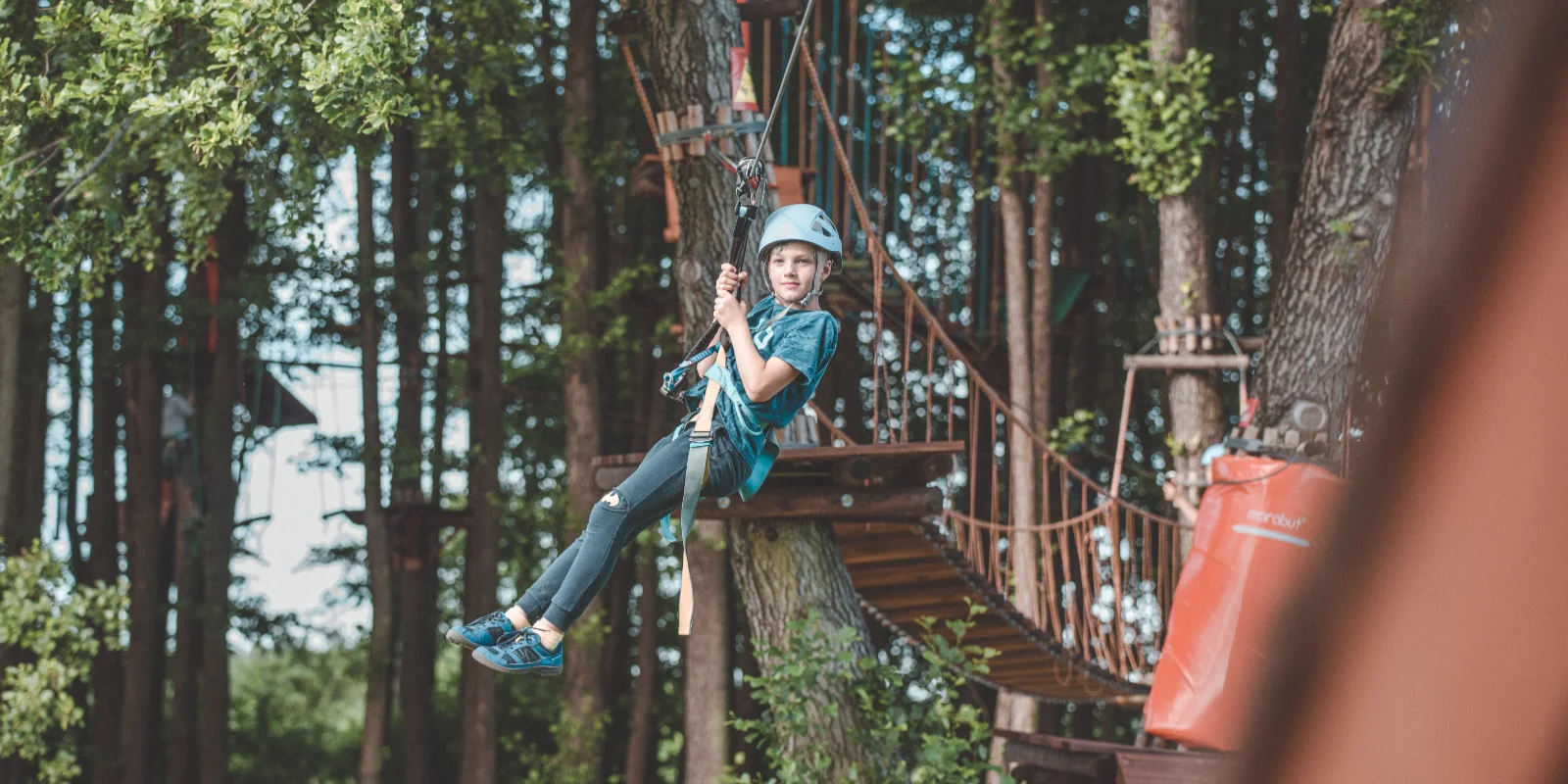 - Wyzwania wysokościowe: park linowy z wieloma przeszkodami oraz ścianka wspinaczkowa,