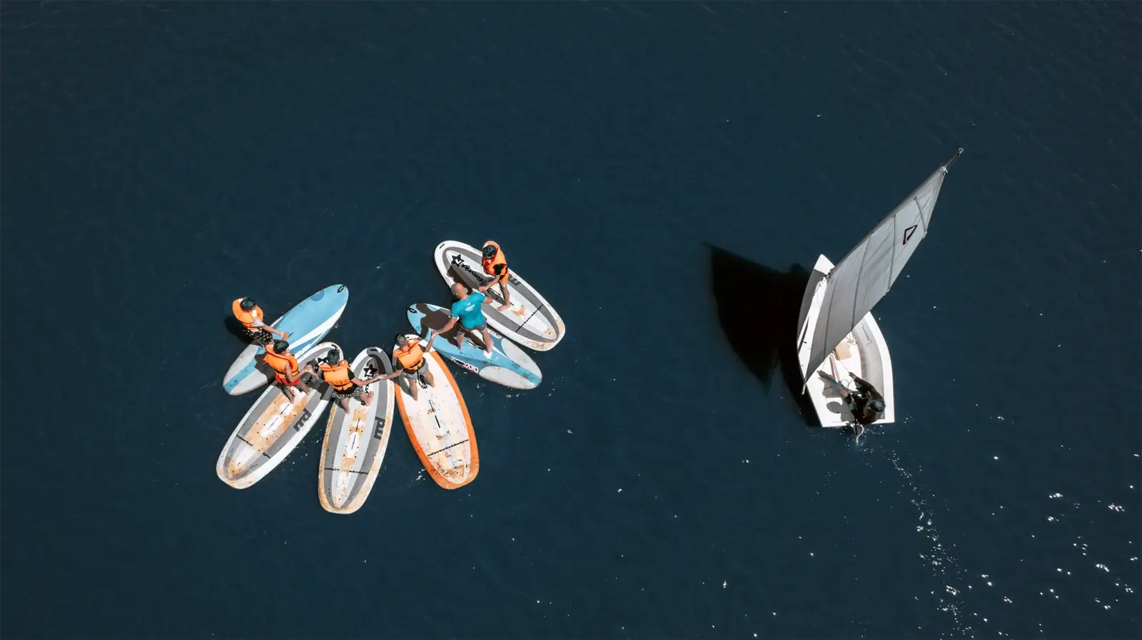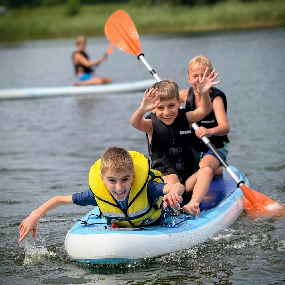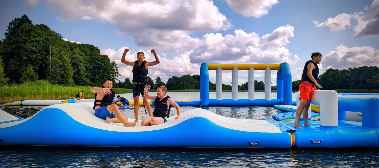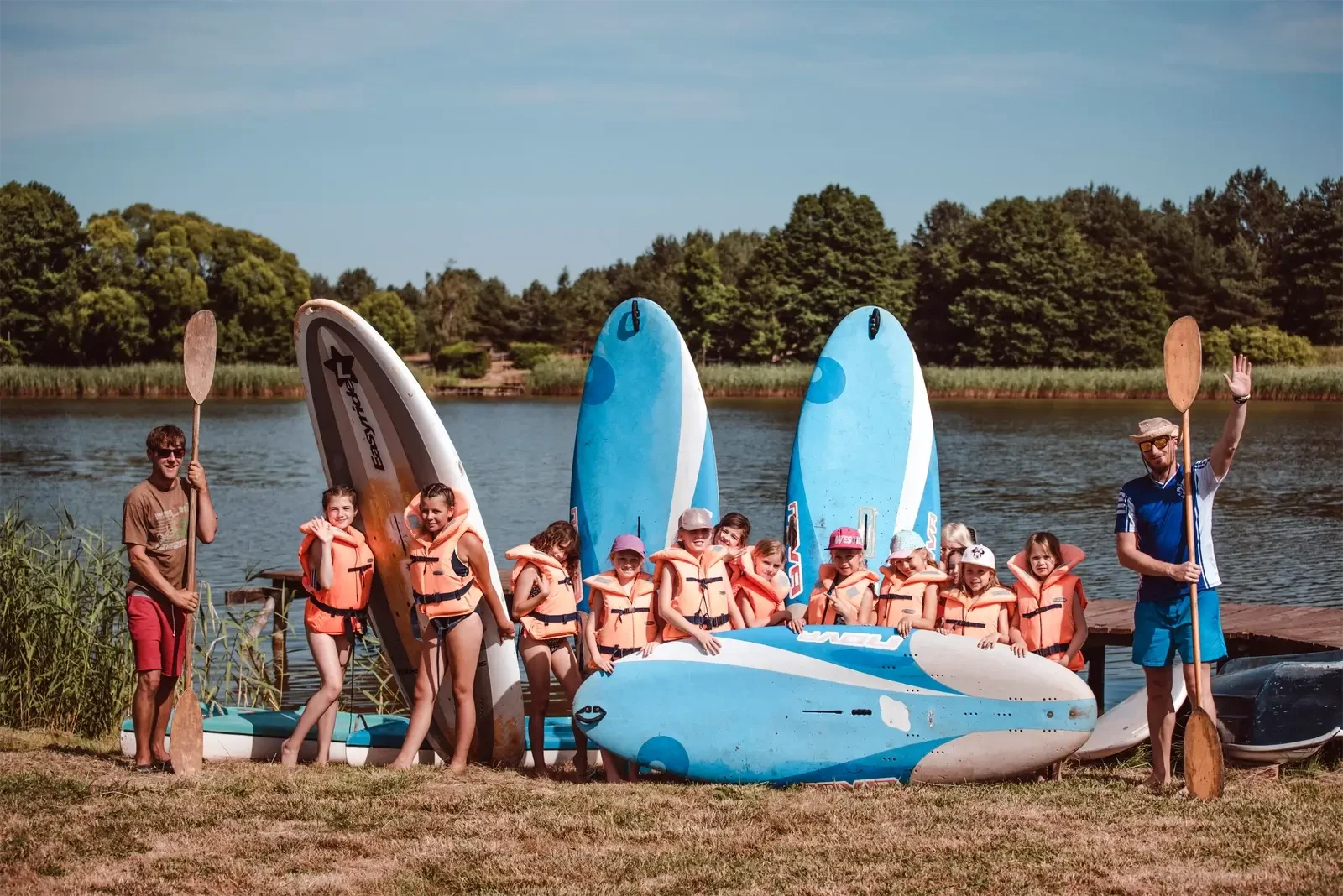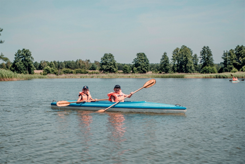 - Aktywności na wodzie: zajęcia z kajakarstwa, żeglarstwa oraz manewrowanie rowerami wodnymi i zespołowe budowanie tratwy,